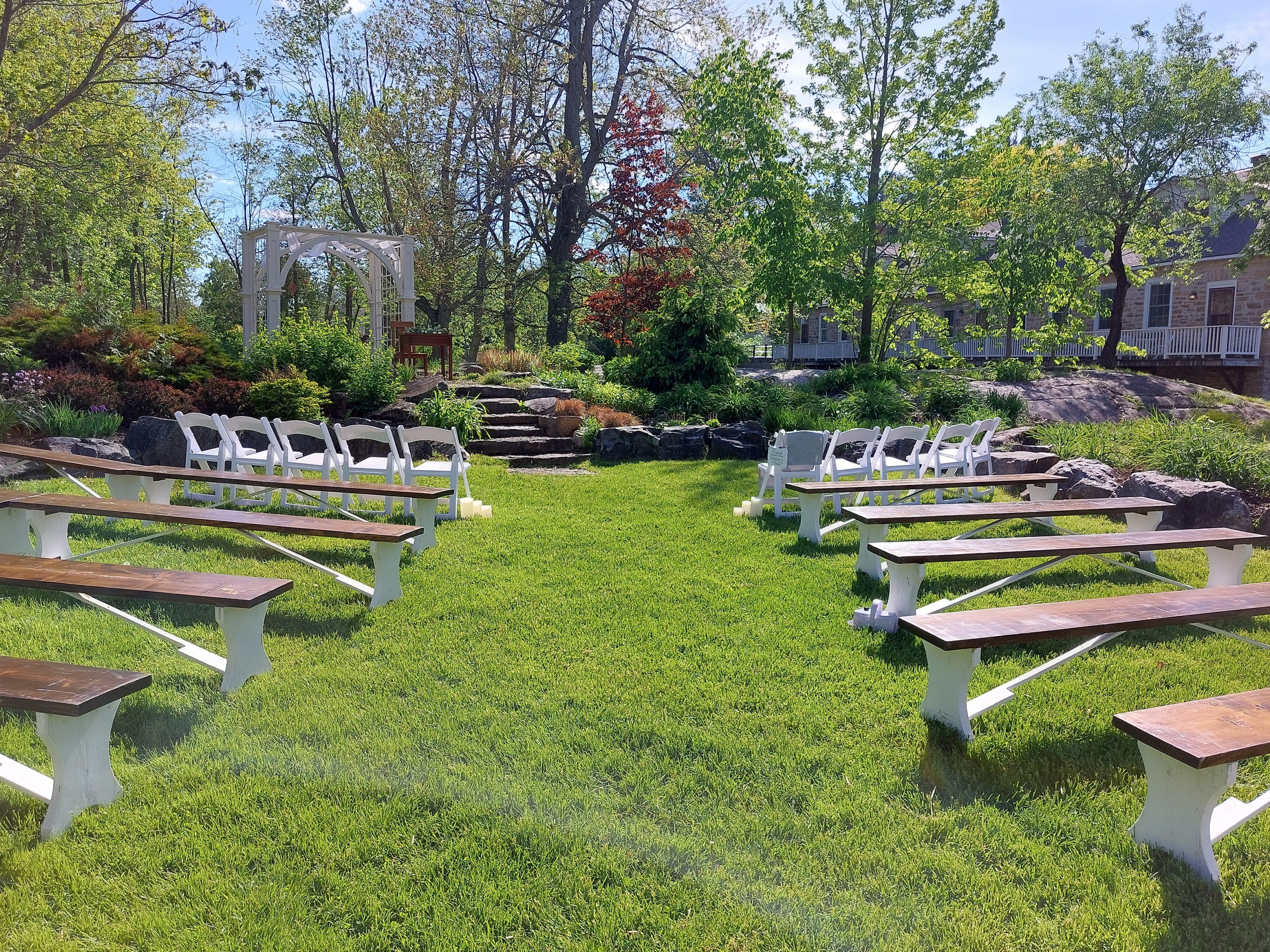 The weather made things a little uncertain with the rain early on in the day, but the sun came out to the song of “Here Comes The Sun” while we set up the reception site, and it was clear sailing after that!
